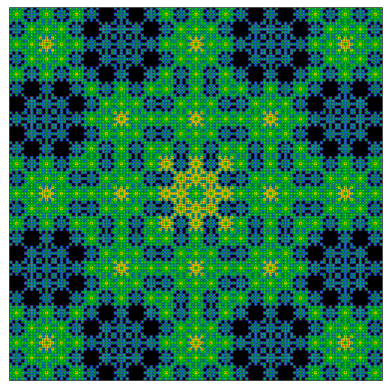 Same thing with a box-fractal using the von-Neumann neighborhood.